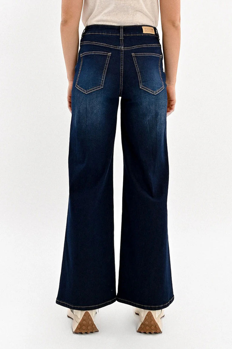 Elevate your style with our high-waisted wide-leg jeans. Crafted with a high waist and wide silhouette, these jeans offer a flattering fit and added comfort. Featuring side pockets on the front and patch pockets on the back, as well as a zip fly and contrasting button closure, these jeans are the perfect blend of style and functionality. Make a statement in these premium jeans.