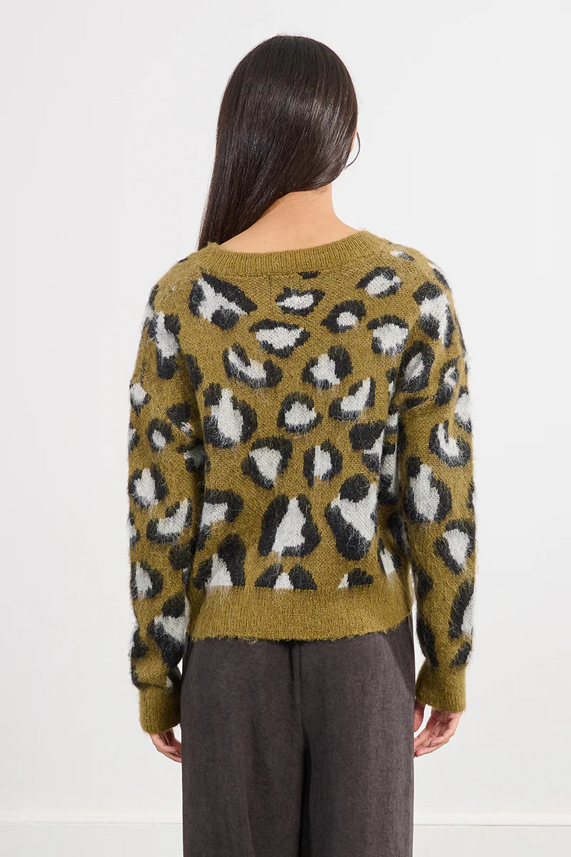 Indulge in luxurious comfort with our olive Leopard Print Sweater by Lili Sidonio. Made from a soft knitted fabric, this sweater features long sleeves and a flattering v-neckline. The bold leopard print adds a touch of sophistication, while the crop cut adds a trendy and stylish touch. Elevate your wardrobe with this exclusive piece.