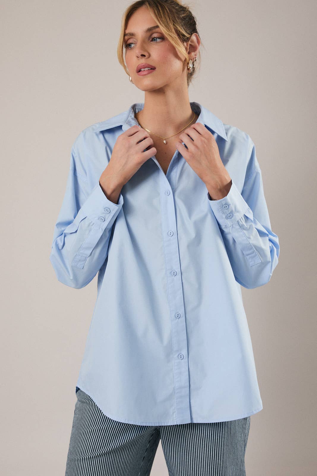Indulge in luxurious comfort with our oversized, long sleeve button down blouse. Made from 100% cotton, this blouse is the epitome of sophistication and elegance. Perfect for any occasion, upgrade your wardrobe with this timeless piece.